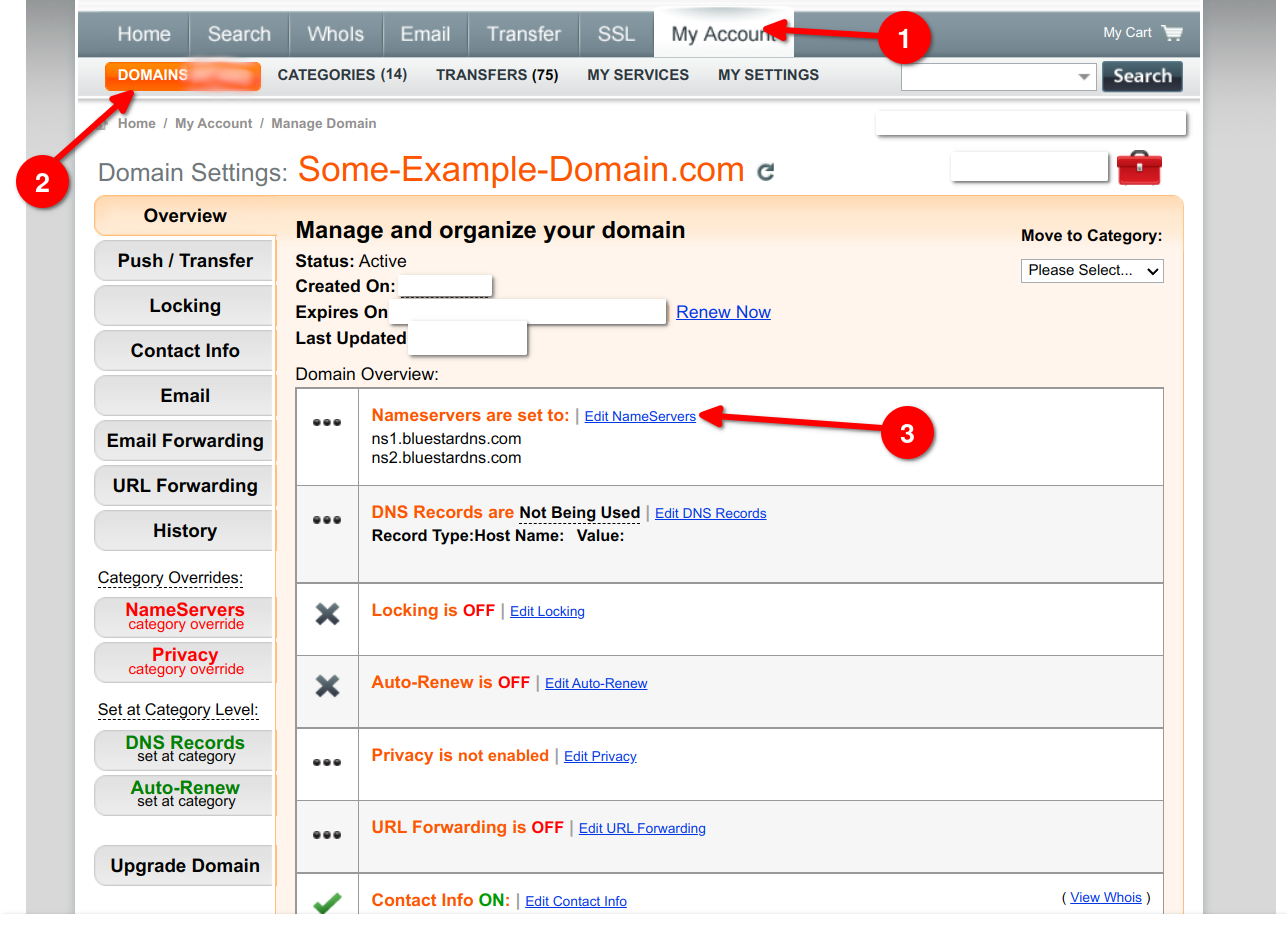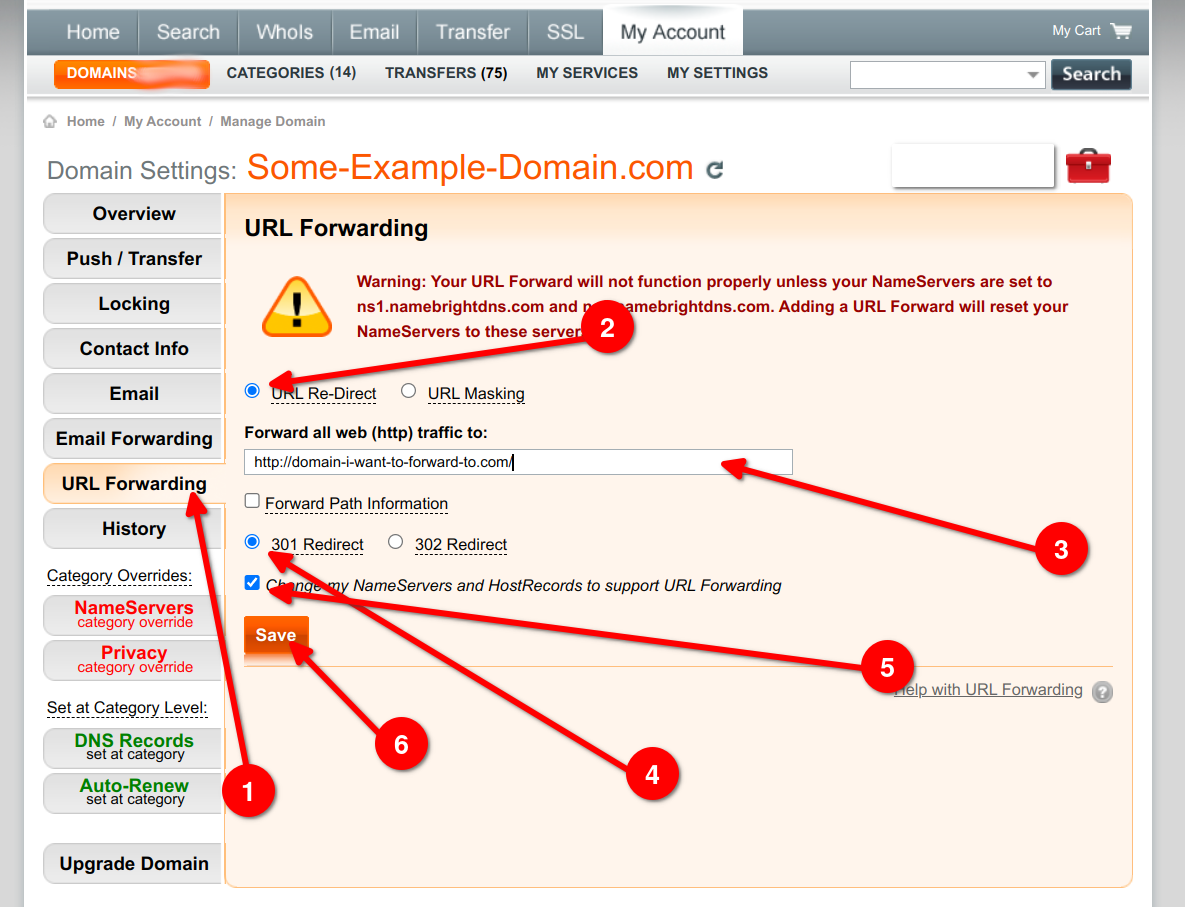 Now the domain have nameservers "pointed" to NameBright and NameBright will able to redirect the domain where you tell it to